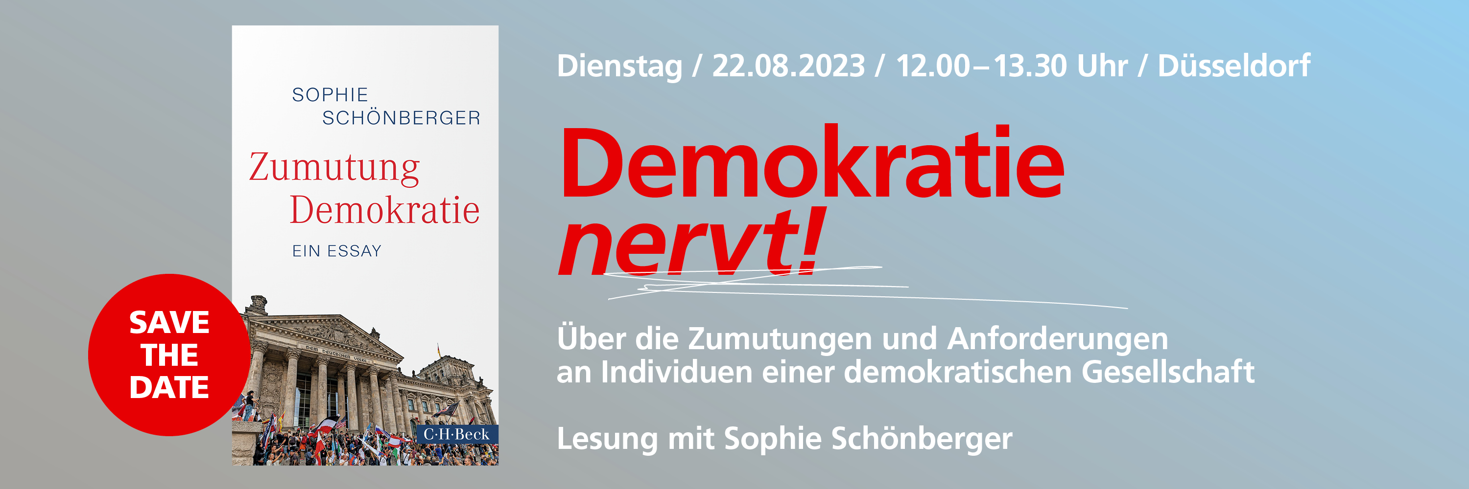 Demokratie nervt! Über die Zumutungen und Anforderungen an Individuen einer demokratischen Gesellschaft – Lesung „Zumutung Demokratie“ mit Sophie Schönbergerkostenfrei, mit Poetry Slam, Mittagsimbiss und GetränkenDemokratie ist kein individuelles Selbstverwirklichungsprojekt sagt Sophie Schönberger, Professorin für Öffentliches Recht, Kunst- und Kulturrecht an der HHU Düsseldorf. Denn, „Demokratie braucht Gemeinschaft (…) und setzt voraus, dass jeder Einzelne bereit ist, sich mit anderen Menschen zu einem Gemeinwesen zusammenfassen zu lassen.“Aber warum wird Demokratie als Individualisierungsprojekt gesehen? Und welchen Beitrag leistet „Social Media“ dazu? Instagram und Co. sind alleine für das monologische Senden von Informationen ausgelegt. Das Ich wird möglichst schön und einzigartig präsentiert und von Algorithmen und Likes bestätigt. Wenn Interaktion stattfindet, dann mit Gleichgesinnten, denn hier besteht die individuelle Freiheit auch darin, innerhalb der „bubble“ bleiben zu können und Unbequemes auszublenden. Dadurch verschwinden niedrigschwellige Orte, wo sich unterschiedlichste Menschen mit abweichenden Meinungen persönlich begegnen und ertragen. Und auch das gemeinsame Leben und sich-Wahrnehmen verliert an Bedeutung.Die Gesprächsbereitschaft sinkt - aber was bedeutet das für unseren Alltag? Was kann für mehr Begegnungen getan werden? Wie müssen wir mit abweichenden Meinungen umgehen? Gar mit diskriminierenden Aussagen oder Angriffen auf das Grundgesetz? Aus individueller Perspektive können andere Ansichten innerhalb unserer Demokratie unerträglich erscheinen. Was genau also müssen wir aushalten? Wir laden Sie herzlich ein, Sophie Schönbergers Thesen aus ihrem Essay „Zumutung Demokratie“ kennenzulernen, mitzudiskutieren und bei einem kleinen Imbiss mit uns ins Gespräch zu kommen.