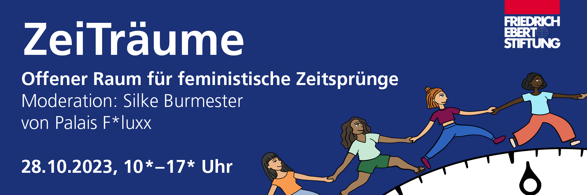 Open Space Workshop mit Nadia Shehadeh ("Anti-Girlboss"), Silke Burmester (Palais F*luxx) uvm. Wir wollen eine unserer kostbarsten Ressourcen gerechter gestalten: ZEIT. In unserem Open Space nähern wir uns zusammen Themen wie feministischer Zeitökonomie, Care-Arbeit, Zeitpolitik und den Herausforderungen der vielen Gender Gaps an. Diese entscheidenden Aspekte unseres sozialen Gefüges müssen in den Fokus rücken – und dieser Open Space ist der Ort, an dem das passiert. Hier ist Raum für politische Debatten, Aktivismus, kreative Ideen, wissenschaftliche Erkenntnisse, Kunst, Musik und natürlich auch Momente des Vergnügens und der Nachdenklichkeit. Wir laden euch ein, diese vielschichtigen Themen in einem inspirierenden Umfeld zu erforschen.Nadia Shehadeh (Autorin "Anti-Girlboss") wird Euch einen Impuls geben und unser Moderator_innenteam unter der Leitung von Silke Burmester (Palais F*luxx) begleitet Euch auf dieser spannenden Reise, doch:die Inhalte und Diskussionen bestimmt IHR!Lasst uns gemeinsam Impulse setzen, die zukünftige Debatten und Initiativen prägen. Dies ist eure Gelegenheit, die Zukunft unserer Zeit in die eigenen Hände zu nehmen. Seid Teil dieser Bewegung und gestaltet die Zeitgerechtigkeit aus feministischer Perspektive!ZUM ABLAUF:Wo:Friedrich-Ebert-Stiftung Berlin, Haus 2Hiroshimastraße 28, 10785 BerlinWann: 28.10.2023