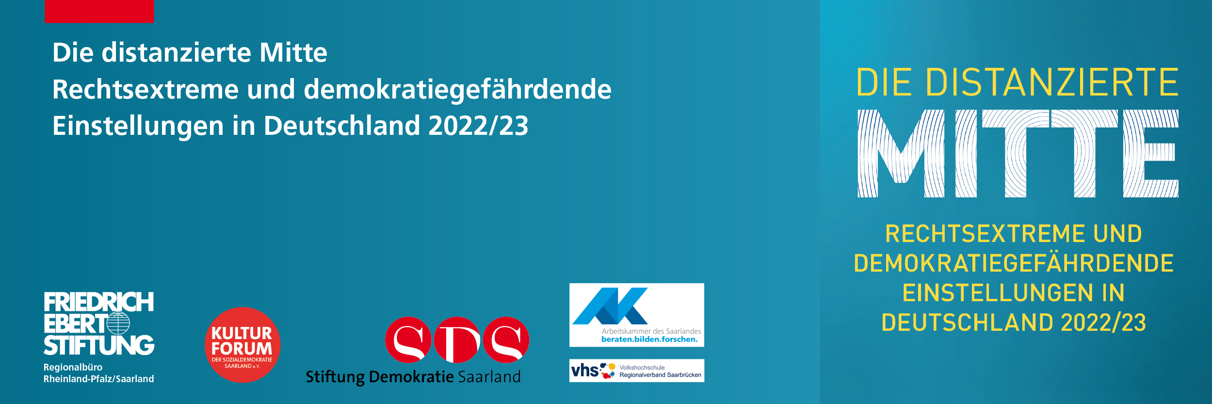 Die Pandemiefolgen sind noch nicht bewältigt, die Inflation hoch, die Klimakrise immer virulenter, da entstehen mit dem Angriffskrieg Russlands auf die Ukraine und dessen Folgen für Sicherheit und Energieversorgung weitere Herausforderungen für die „Mitte“. Inmitten von multiplen Krisen erhöhen sich Unsicherheiten und Verteilungskonflikte, sodass antidemokratischen Positionen, rechtsextremen Ideologien und der Abwertung der „Anderen“ ein Einfallstor geboten wird.Die FES-„Mitte“-Studie 2022/23 beleuchtet rechtsextreme und demokratiegefährdende Einstellungen und Hintergründe und regt zur Debatte an.Die Ergebnisse der Studie zeigen, dass die Demokratie, ihre Grundprinzipien, Abläufe und Institutionen zunehmend mit Distanz betrachtet werden. Die „Mitte“ der Gesellschaft wird empfänglicher für extremistische, demokratiefeindliche und menschenfeindliche Einstellungen. Zugleichgeht eine demokratiefeste „Mitte“ auf klare Distanz zu den Feinden der Demokratie. Will und kann sie diese Distanz überbrücken?Wir laden Sie herzlich ein, die Ergebnisse der neuesten Studie und mögliche Gegenstrategien mit unseren Expert_innen zu diskutieren: Was bedeuten die Studienergebnisse für die Demokratieförderung? Wie kann eine Deradikalisierungsstrategie aussehen? Durch welche Maßnahmen kann das Vertrauen in demokratische Institutionen gestärkt werden? Und wie überzeugen wir Menschen mit einer unsicheren Haltung zur Demokratie?Gesprächspartnerinnen:Prof. Dr. Beate Küpper, Professorin für Soziale Arbeit in Gruppen und Konfliktsituationen an der Hochschule Niederrhein, Mitherausgeberin der »Mitte-Studie« und Kira Braun, MdL, stellvertretende Vorsitzende der SPD-Landtagsfraktion des SaarlandesModeration: Dörte Grabbert, Arbeitskammer des Saarlandes, Pressesprecherin- Nachholtermin für die am 19.12.2023 kurzfristig ausgefallene Veranstaltung. -Eine Kooperation der Friedrich-Ebert-Stiftung mit dem Kulturforum der Sozialdemokratie Saarland e.V. und der Stiftung Demokratie Saarland sowie der Arbeitskammer des Saarlandes, unterstützt von der vhs Regionalverband Saarbrücken.Es gilt der Einlassvorbehalt.