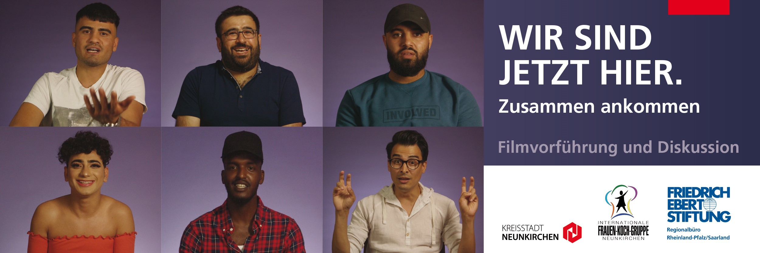Im Jahr 2024 steht die Debatte um Migration wieder im Zentrum politischer Diskurse. Innerhalb der politischen Debatte wird jungen Männern immer wieder eine ganz besondere Rolle zugeschrieben. Männer, die allein aus Syrien oder Afghanistan, aus Somalia, Eritrea oder dem Irak nach Deutschland kamen. Seit 2015 werden sie immer wieder zur Projektionsfläche für alle, die Zuwanderung skeptisch oder ablehnend gegenüberstanden. Mit ihnen begründete man Abschottungspolitik, aber auch plumpen Rassismus. Nicht selten gilt ihre Präsens in öffentlichen Räumen als Bedrohung für die lokale Sicherheit.Zugleich wurde viel häufiger über sie gesprochen als mit ihnen – und da setzt der Film „Wir sind jetzt hier“ an. Sieben junge Männer erzählen vom Ankommen in Deutschland: Von lustigen und beglückenden Momenten und von Momenten tiefster Verzweiflung. Sie erzählen von ihren Ängsten uns wie mit ihnen umgegangen sind. Sie erzählen von Rassismus und von der Liebe. Ihre Geschichten lassen die Zuschauer_innen teilhaben an den emotionalen Turbulenzen, die eine Flucht fast immer nach sich zieht. Die Geschichten übers Ankommen erzählen zugleich viel darüber, was es auch in den nächsten Jahren noch braucht, damit Integration gelingt – und nicht nur von denen, die ankommen.Zusammen mit der Internationalen Frauen-Kochgruppe Neunkirchen , der AG „Subjektives Sicherheitsgefühl“ sowie der Gleichstellungsbeauftragten in Neunkirchen lädt das Regionalbüro Rheinland-Pfalz/Saarland der Friedrich-Ebert-Stiftung zum Filmgespräch ein. Gemeinsam besprechen wir im Anschluss an die Filmvorführung, ob und inwiefern sich das Stadtbild Neunkirchens verändert hat und welche Austauschmöglichkeiten es bräuchte, um ein Zusammenleben zwischen allen zu stärken. Hierbei stellen wir uns auch die Frage, wie es gelingen kann, dass das Sicherheitsgefühl der Frauen Neunkirchens nachhaltig verbessert werden kann.