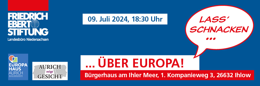 Europa hat gewählt! Rechtspopulistische Parteien konnten in vielen Mitgliedsstaaten der Europäischen Union mehr Stimmen gewinnen als noch 2019, auch in Deutschland. Was bedeutet diese Wahl jetzt fürdie Europäische Union und auch für uns in Deutschland? Wie geht es die nächsten fünf Jahre weiter? Darüber möchten wir mit Euch und dem Politikwissenschaftler und Historiker Siebo Janssen ins Gesprächkommen.