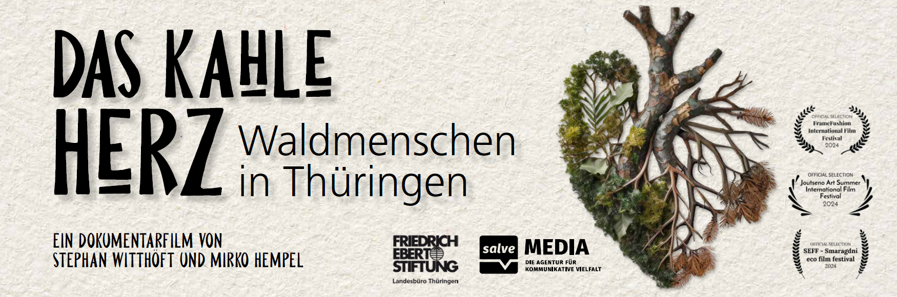 In der Stille des Waldes offenbart sich eine Welt von überwältigender Schönheit und Komplexität. Seit Jahrtausenden leben wir im Einklang mit diesem lebendigen Ökosystem, das uns stets fasziniert und inspiriert hat. Der Wald verkörpert für uns eine Welt, die weit über bloße Baumreihen hinausgeht. Er ist ein integraler Bestandteil unserer Identität, unserer Kultur und unserer Geschichte. Unsere Märchen und Legenden, unsere Traditionen und Bräuche wurzeln tief in seinem Boden.Doch die Vorstellung vom wild-romantischen, urdeutschen Märchenwald mit seinen knorrigen Bäumen verbirgt die Realität: Trockenheit, Borkenkäfer, Umweltkatastrophen und Brände setzen unseren Wäldern zunehmend zu. Die Klimaerwärmung ist dabei nicht allein verantwortlich für den zunehmenden Verfall der Wälder. Auch eine seit etwa 200 Jahren bestehende Forstpolitik, die auf Nadelholz fixiert ist, und der kontinuierlich steigende Bedarf an Holz tragen dazu bei, dass immer mehr Wälder schwer geschädigt werden.Wir begleiten die Menschen, die den Wald formen und nutzen, aber auch schützen und bewahren wollen: von der Revierförsterin, über den privaten Waldbesitzer bis hin zum Ehrenamt. Eines wird dabei deutlich: Der Wald kann ohne den Menschen existieren – aber der Mensch nicht ohne den Wald.Wir freuen uns auf Sie und unsere Gesprächsgäste Herrn Ansgar Pape, Forstamtsleiter im Forstamt Marksuhl, und Protagonist Lothar Maak. Moderiert wird der Abend vom Journalisten Maik Schulz. Der Eintritt ist frei. Tickets erhalten Sie Online oder vor Ort im Capitol-Filmtheater Eisenach: www.cineplex.de/film/das-kahle-herz-waldmenschen-in-thueringen/404155/eisenach/.Trailer zum Film und weitere Informationen erhalten Sie hier:www.fes.de/landesbuero-thueringen/filmprojekte/das-kahle-herz-waldmenschen-in-thueringen .