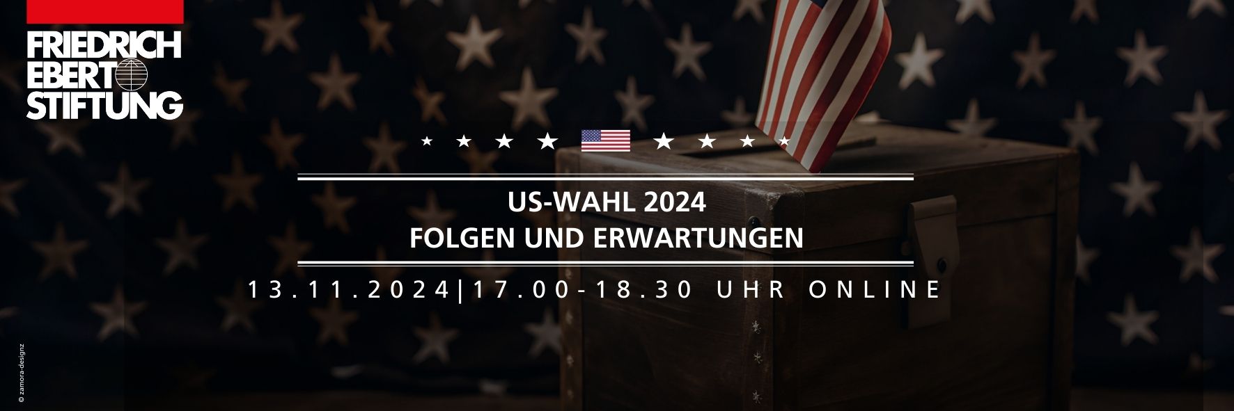 Mit großer Spannung wird der Ausgang der Präsidentschafts- und Kongresswahl am 5. November 2024 in den USA erwartet. Während für die Republikaner erneut Donald Trump ins Rennen gegangen ist, tritt für die Demokratische Partei Vize-Präsidentin Kamala Harris als Präsidentschaftskandidatin an. Der Wahlkampf ist dabei von außergewöhnlicher Polarisierung und hitzigen Debatten ebenso wie von Gewalt gekennzeichnet. Im Rahmen der Veranstaltung wollen wir über das Ergebnis der Wahl, die zukünftige Ausrichtung der USA und das Verhältnis zwischen Amerika und der Europäischen Union diskutieren. Zentrale Fragen stellen sich dabei: Was bedeutet das Ergebnis für die Beziehungen der Europäischen Union zu den USA? Welche Folgen für die Wirtschaft sowie Klima- und Sicherheitspolitik sind zu erwarten? Welche Auswirkungen hat das Ergebnis auf die weitere Entwicklung und den Zusammenhalt in den USA? Acht Tage nach der Wahl werden Bewertungen und Erwartungen zur Diskussion gestellt. *Personen, die rechtsextremen Parteien oder Organisationen angehören oder der rechtsextremen Szene zuzuordnen sind, sind von der Veranstaltung ausgeschlossen. Die Veranstaltenden werden ihnen den Zutritt zur Veranstaltung verwehren oder sie während der Veranstaltung von dieser ausschließen.Bitte beachten Sie: Während dieser Veranstaltung der Friedrich-Ebert-Stiftung e.V. werden Fotos und ggf. Film- und/oder Audioaufnahmen zu Zwecken der Presse- und Öffentlichkeitsarbeit gemacht. Eine Weitergabe an Dritte erfolgt nur nach sorgfältiger Prüfung und im Rahmen der journalistischen Berichterstattung. Durch Ihren Besuch der Veranstaltung erklären Sie sich damit einverstanden.