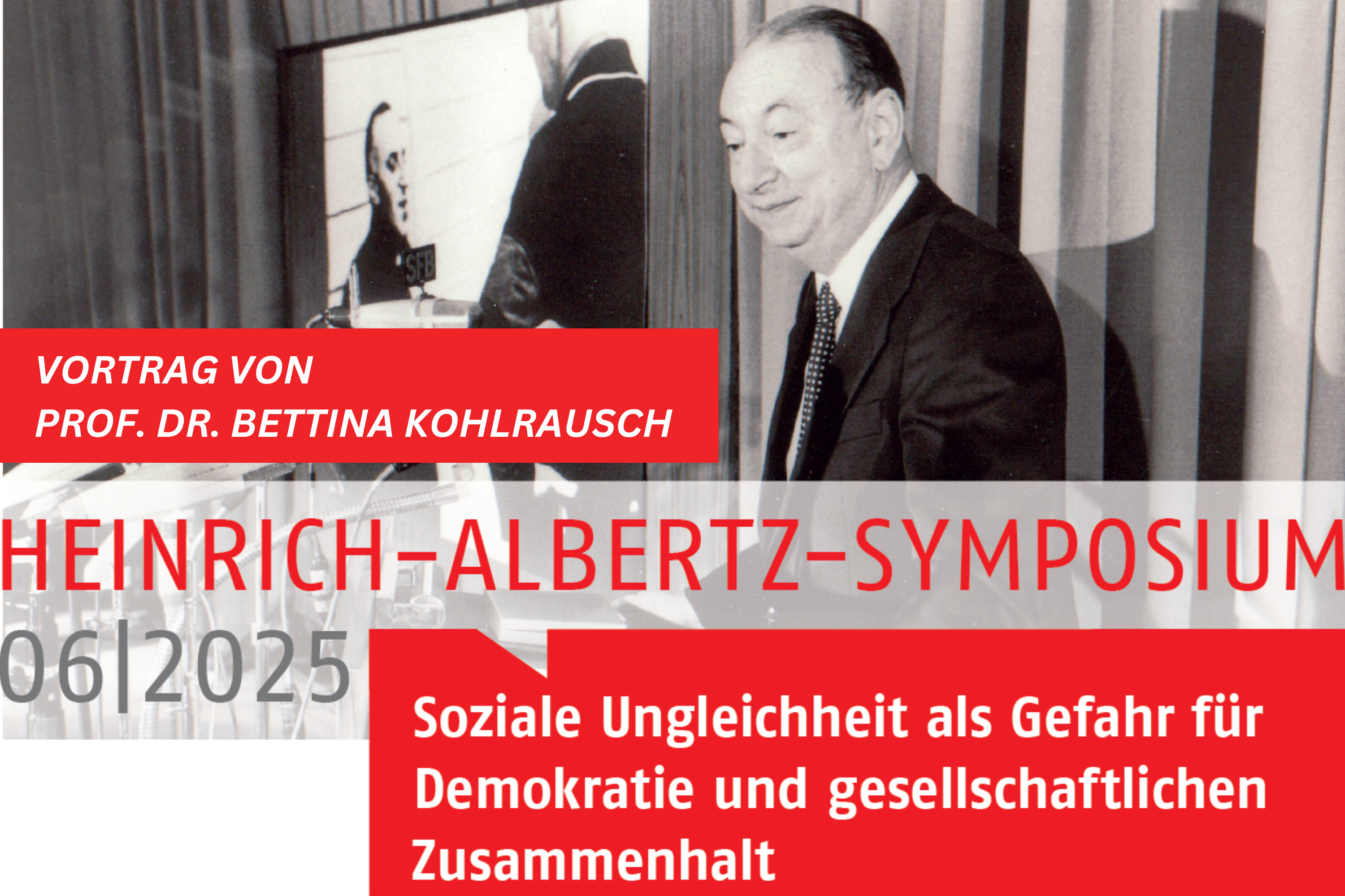 ++++Für diese Veranstaltung ist keine Anmeldung erforderlich+++6. Heinrich-Albertz-Symposium: Soziale Ungleichheit als Gefahr für Demokratie und gesellschaftlichen Zusammenhalt Der AWO Landesverband Bremen e.V., die Bremische Evangelische Kirche und die Friedrich-Ebert-Stiftung e.V. laden zum sechsten Heinrich-Albertz-Symposium ein. Um an das Wirken von Heinrich Albertz (1915-1993) und dessen Engagement für Frieden und Sozialstaat zu erinnern, greift das Heinrich-Albertz-Symposium seit 2019 jährlich jeweils zu Beginn des Jahres ein aktuelles Thema auf. Im Mittelpunkt stehen gesellschaftliche und politische Entwicklungen sowie die Herausforderungen der Gegenwart. Impulsvorträge von prominenten Redner*innen aus Politik, Kirche und Gesellschaft bilden jeweils den Einstieg in einen intensiven Gedankenaustausch. In diesem Jahr hält Prof. Dr. Bettina Kohlrausch, Direktorin des Wirtschafts- und Sozialwissenschaftlichen Instituts der Hans-Böckler-Stiftung einen Impulsvortrag mit dem Titel „Soziale Ungleichheit als Gefahr für Demokratie und gesellschaftlichen Zusammenhalt“. Darin geht sie darauf ein, wie sehr Möglichkeiten der gesellschaftlichen Teilhabe mit den Einkommensvoraussetzungen der Menschen zusammenhängen und warum zunehmende Zukunftssorgen auch negative Folgen für unser demokratisches System haben. Im Anschluss an den Vortrag gibt es die Möglichkeit zur Diskussion. Begrüßung: Dr. Uwe Lissau AWO Landesverband BremenModeration: Stine Klapper, Friedrich-Ebert-Stiftung Regionalbüro NordSchlusswort: Pastor Dr. Bernd Kuschnerus, Bremische Evangelische Kirche Dienstag, 4. Februar 2025, 18:00 Uhr Kulturkirche St. Stephani Bremen, Stephanikirchhof 8, 28195 Bremen.Der Eintritt ist frei.