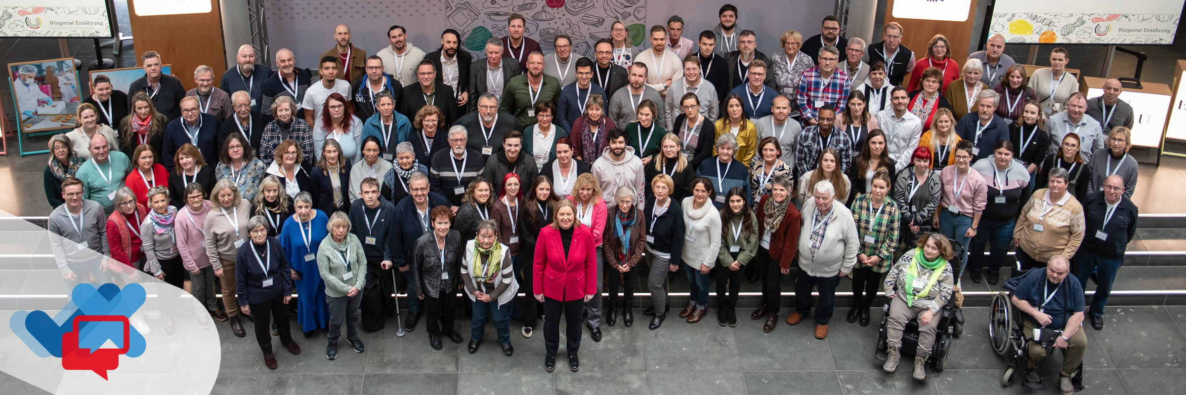 Zum ersten Mal kamen die 160 Bürger_innen Ende September 2023 zusammen. Darauf folgten zwei weitere Wochenenden in Berlin und insgesamt sechs Online-Sitzungen zur vertieften Diskussion und Zusammenstellung der Empfehlungen in einem Bürgergutachten. Vorher hatten die Bundestagsabgeordneten dem Bürgerrat einige Fragen mit auf den Weg gegeben, beispielsweise „Wie können die Bürger_innen bei Kaufentscheidungen im Hinblick auf eine gesunde Ernährung besser unterstützt werden?“